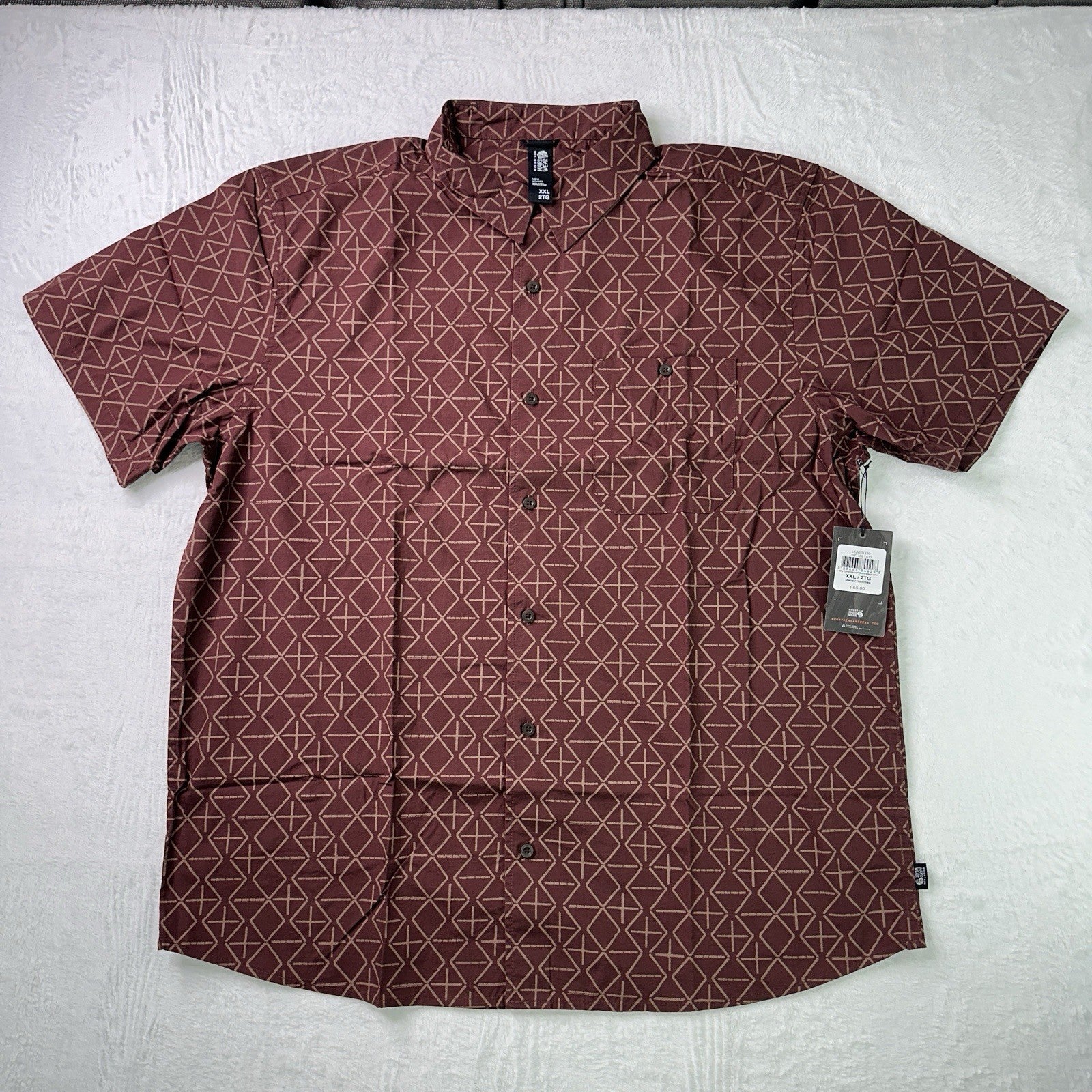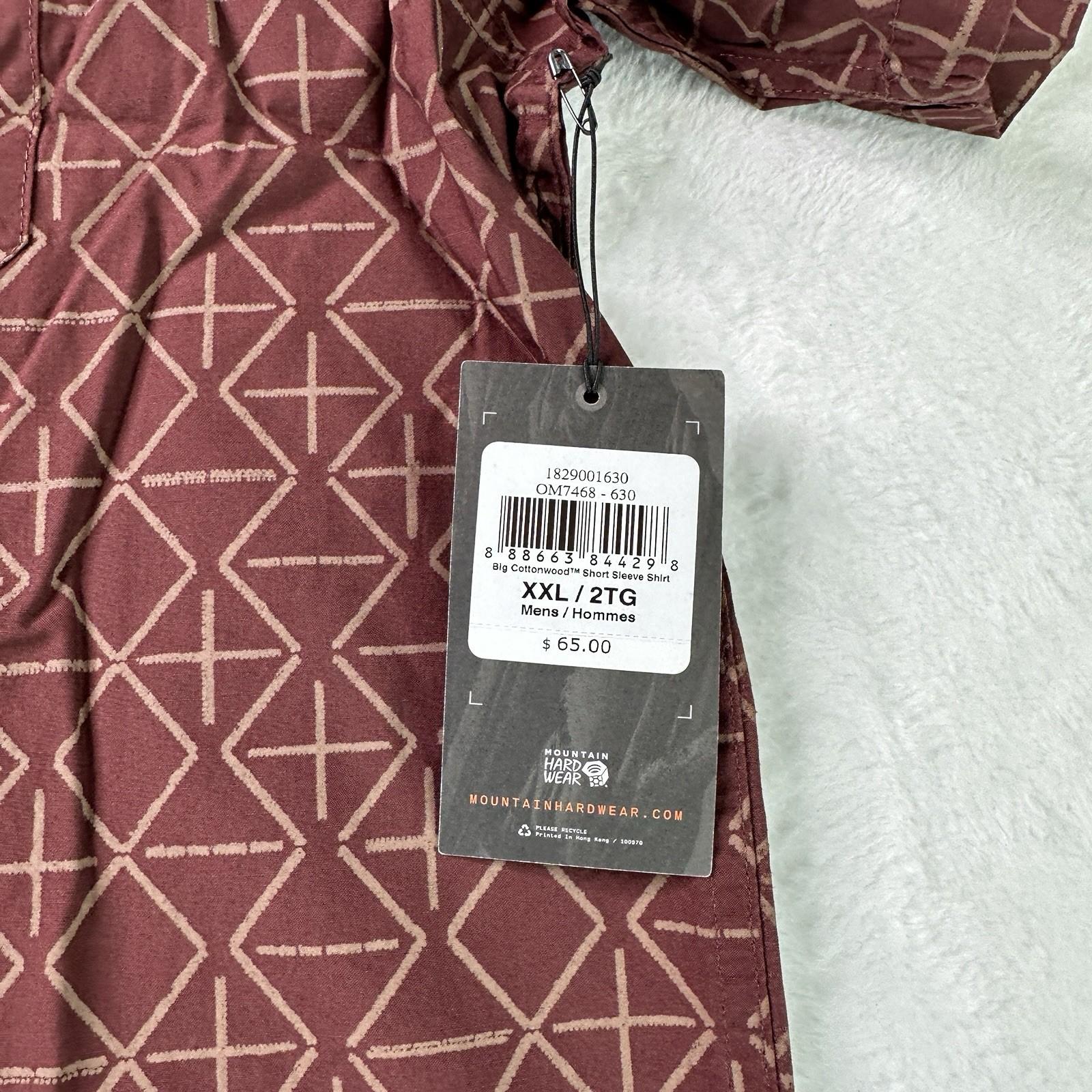 The Men's Mountain Hardwear Big Cottonwood Short Sleeve Shirt in size XXL is a stylish and comfortable button-up shirt perfect for casual wear. Made from lightweight cotton material, this shirt features a geometric washed raisin dot print in a vibrant color. The regular fit and button-down collar add a touch of sophistication, while the addition of pockets offers both functionality and style. Ideal for men looking for a relaxed yet fashionable option to add to their wardrobe.