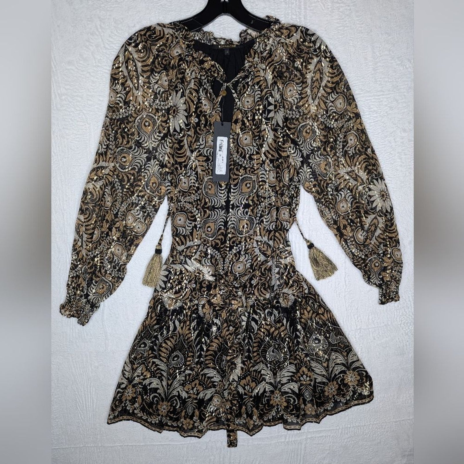 NEW KOBI HALPERIN kaye tie waist dress in black/gold XS